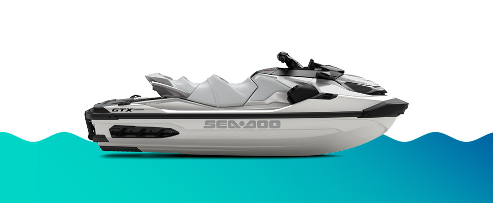 Seu casco ST3, maior e mais estável, entrega equilíbrio inédito. Destaques incluem tela touchscreen de 10,25” com BRP Connect, cunhas de atracação, amortecedor hidráulico de direção, sistema iBR, iTC, D-Sea-Bel, sistema de trim variável (VTS) de alta performance,