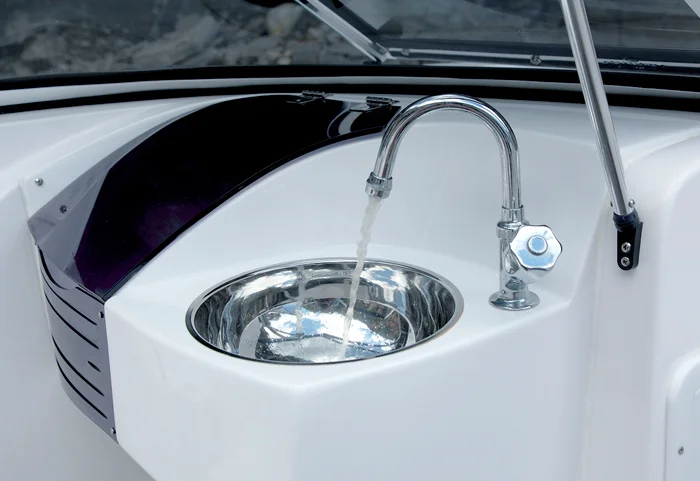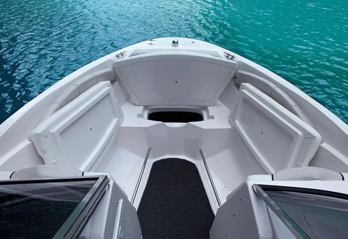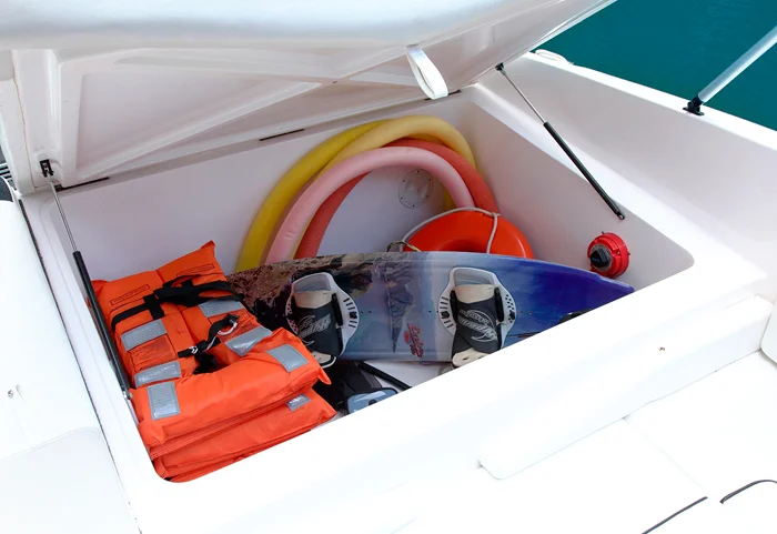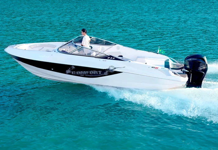 Maior e melhor paiol de popa da categoria com acabamento em gel coat