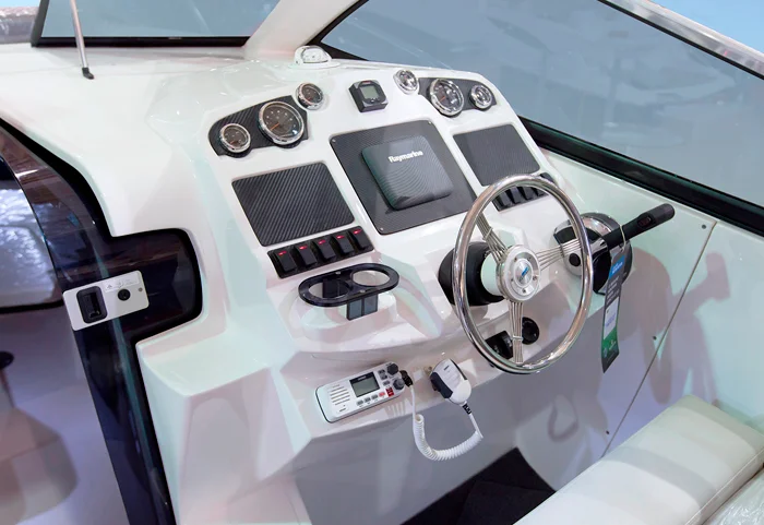 Interruptores pré dispostos com chicotes elétricos codificados para acessórios: Buzina, atuador da casa de máquinas e 2 reservas.