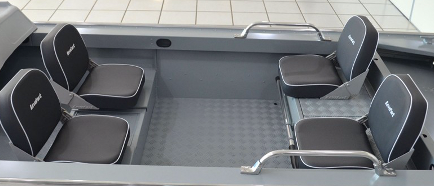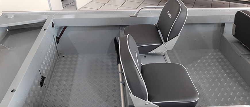 O modelo Fish Tracker possui duas poltronas giratórias na popa