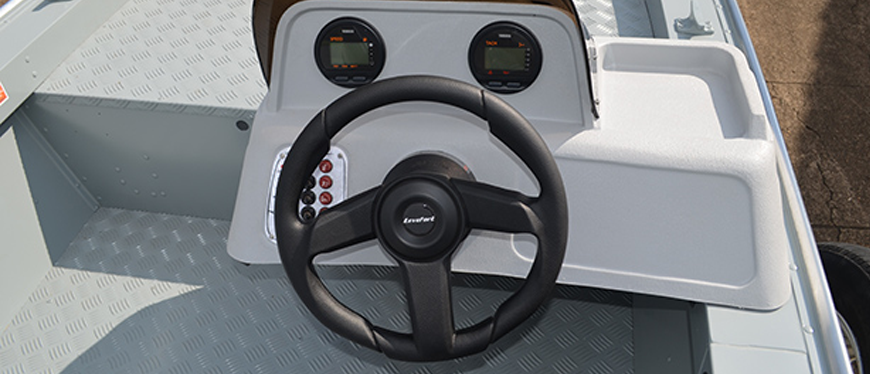 Disponível nas versões Tracker e Fish Tracker, o barco possui casco com fundo semichato e proa quilhada, oferecendo ótima navegabilidade e estabilidade mesmo em repouso.