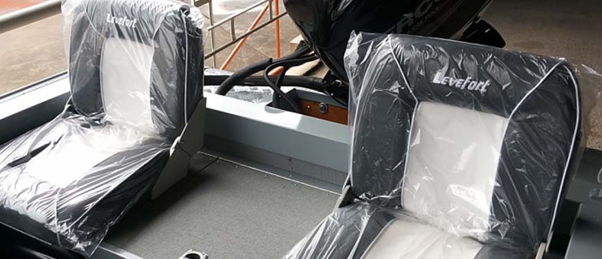 Equipado com quatro poltronas confortáveis, sendo que as duas que ficam na popa são dobráveis, liberando mais uma plataforma de pesca localizada sob os assentos