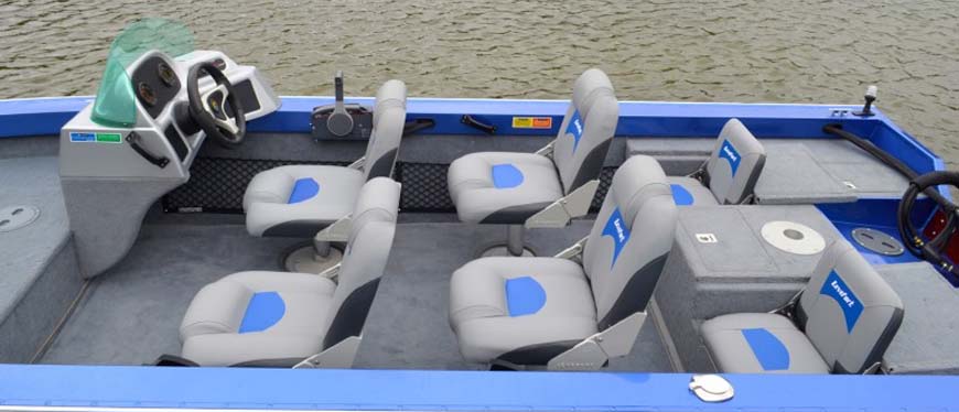 Novo casco, poltronas exclusivas, novo grafismo e principalmente as diversas possibilidades de arranjos internos, para que você possa utilizar seu barco no estilo que desejar, adequando-o para a prática de três modalidades de pesca e ainda passeios com 6 lugares.