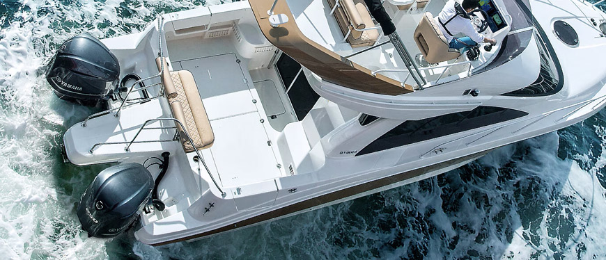 O motor de popa F250 possui um design estruturado e leve do motor apresenta 4 válvulas por cilindro. O sincronismo variável do comando de válvulas (VTC) oferece maior eficiência de combustão na faixa de RPM. Essa combinação de tecnologia avançada oferece potência líder na categoria para a capacidade do motor.