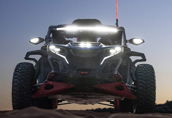 O motor tricilíndrico turboalimentado fornece potência incomparável que você sentirá e ouvirá: são 240 HP de força bruta empurrando essa máquina. Amortecedores FOX PODIUM 3.0 Piggyback com reservatório remoto e bypass e tecnologia Smart-Shox com válvula DDA Gen 3 (compressão e recuperação de válvula dupla). Estabilidade maximizada do veículo para melhor distribuição de carga, melhor altura do centro de rolamento e geometria de direção.